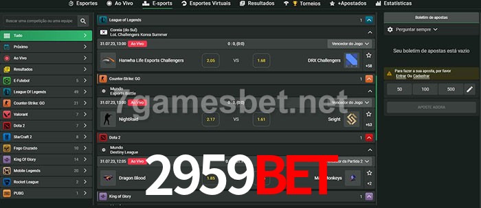 O 2959bet oferece uma grande seleção de opções de apostas em e-sports com probabilidades competitivas